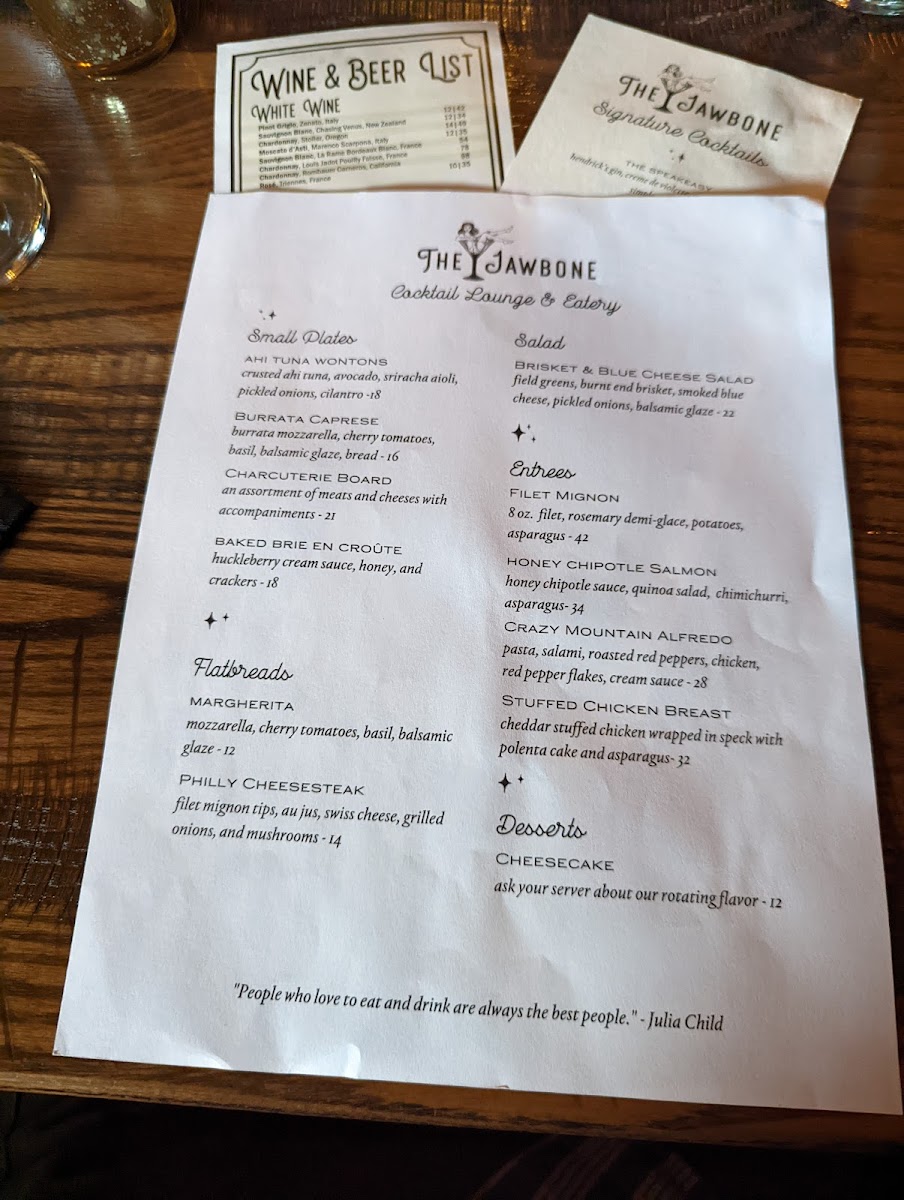 Nestled in the heart of White Sulphur Springs, The Jawbone offers a cozy yet vibrant dining experience. This charming eatery is renowned for mastering the art of small-town hospitality while delivering culinary excellence typically found in metropolitan restaurants. The modern menu shines with standout dishes like expertly prepared steaks, fresh salmon, and delightful appetizers such as spring pea crostini and Brie en croute.
